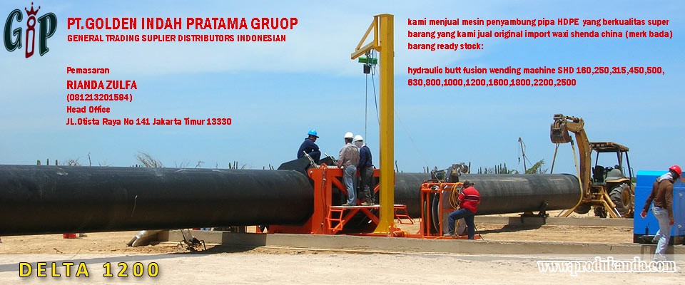 Kami dari PT.GOLDEN INDAH PRATAMA GROUP ( DISTRIBUTORT) menjual mesin penyambung pipa HDPE yang berkualitas super, barang yang kami jual begaransi Original import wuxi shengda china ( merk BADA ) . kami juga menjual fitting, elbow, mesin penyambung hdpe shd